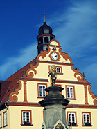 Bad RodachDer Kurpark und auch die historische Altstadt sind sehenswert. Schon 899 wurde der Ort erstmals urkundlich erwähnt. Nachtwächterführungen werden angeboten, die uns zurückversetzen in die Zeit des Dichters Friedrich Rückert, der 1814 hier war und das, was er sah, zu einem Gedicht verarbeitete – und „Idylle Rodach“ nannte. Rückert war Gast des Theologen und Philosophen Christian Hohnbaum, der hier als Superintendent wirkte und mit seiner Familie im Pfarrhaus in der Herrengasse 6 lebte. Das Pfarrhaus wurde zu einer Art Musenhof, in dem man dichtete, komponierte und malte und beste Kontakte zu Jean Paul, Karl Maria von Weber oder August-Wilhelm Schlegel pflegte. Das Gedicht Rückerts ist 308 Zeilen lang – ein Loblied auf Rodach, auf das „Lieblingskind des Himmels“. Das Andenken an den Dichter, Sprachgelehrten und Übersetzer Rückert pflegt in Bad Rodach der Rückertkreis – ein Verein für Heimatgeschichte, dessen Wirken im Heimatmuseum dargestellt wird. Dieses kleine Museum hat seinen Sitz im Jagdschloss, das Mitte des 18. Jahrhunderts unter Franz Josias, Herzog von Sachsen-Coburg-Saalfeld,